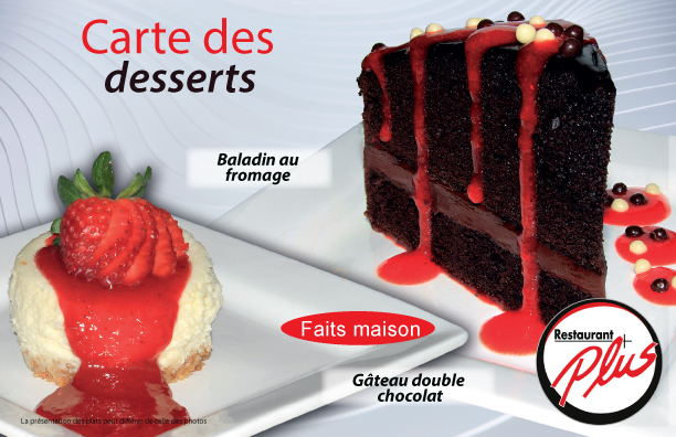 Menu desserts du Plus Restaurant Bar