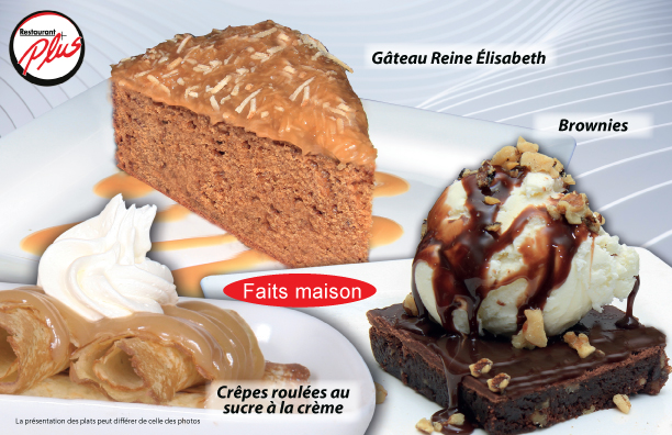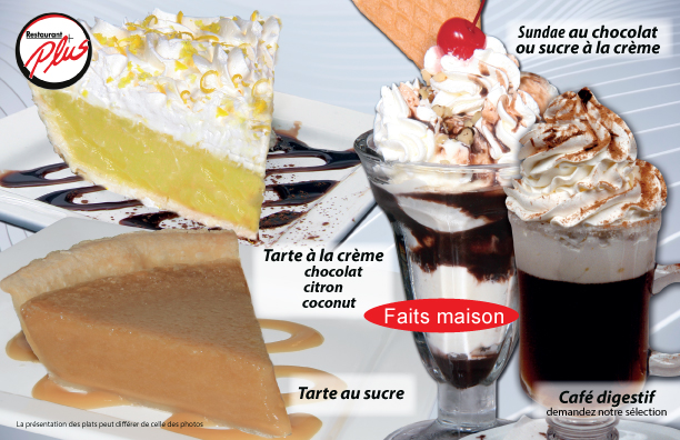 Quoi de mieux qu’une petite gâterie à la fin d’un bon repas ? Le restaurant Plus vous offre une gamme de desserts à la carte, mais aussi des desserts saisonniers cuisinés maison, comme le puff aux fraises, le puff à l’érable, la tarte au sirop d’érable et bien d’autres.